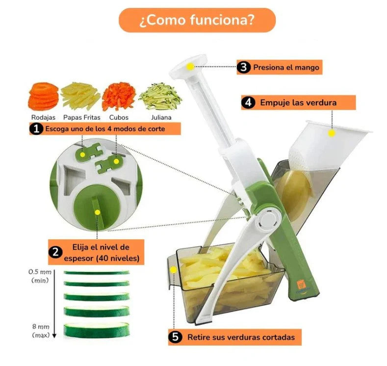 Cortador de Verduras 5 en 1 – Pica, Rebana y Ralla en Segundos sin Esfuerzo